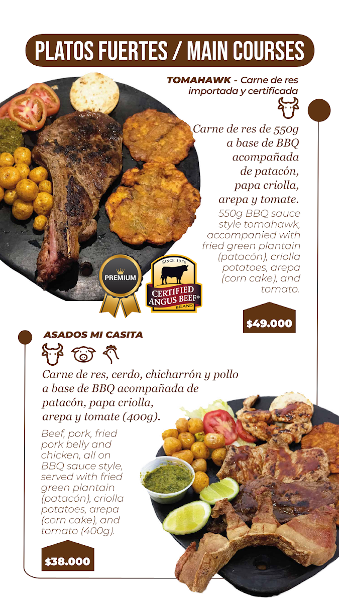 Restaurante | Asados Mi Casita in Manizales is a haven for meat lovers and those seeking a warm, inviting atmosphere. The menu shines with expertly grilled asados and a diverse selection of parrilla platters perfect for sharing. Their picadas stand out, offering generous portions of tender, flavorful proteins accompanied by traditional sides like crispy papa criolla. Complementing the dishes are thoughtfully crafted cocteles that enhance the dining experience.